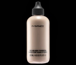 Incepem cu machiajul fetei-pe ten se va folosi  fondul de ten Mac face and Body-care are o putere mica de acoperire insa este un fond de ten buildable ceea ce inseamna ca se poate aplica in mai multe straturi fara a parea efectul de masca-pentru ca este un fond de ten luminos si waterproof.Se poate aplica pe gat si decoleteu-inclusiv pe spate si va completa machiajul pentru perfectiune.