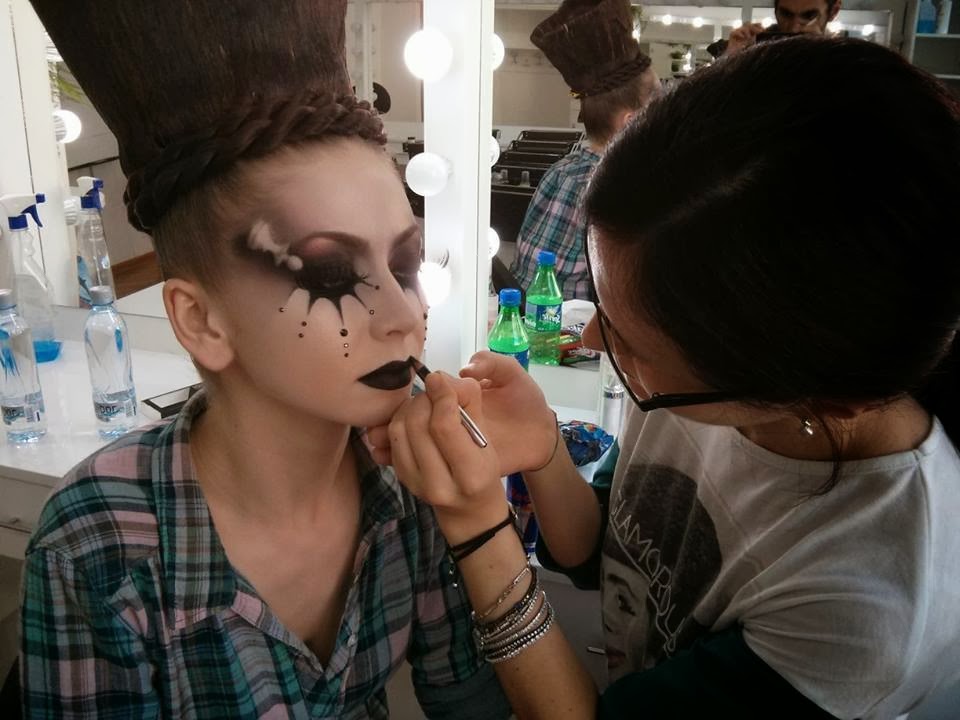 Tot impreuna cu ea am pornit o colaborare pe cursuri de makeup-incercand sa educam populatia de artisti din Timisoara pe tehnica ruseasca de acuarela,creion si eyeliner gel si tehnica de blending.