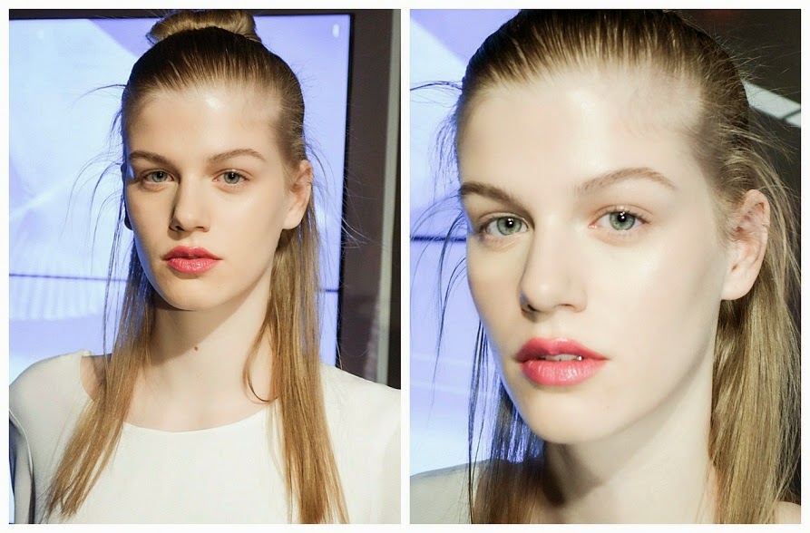 MAC always announces four trends which they then gear all the looks around for the upcoming season. The 2 senior Pro artists Sonic Sarwate and Christina Vacirca ran through each trend and each presented 2 models. TREND #1ENLIGHTENED: Return to radiance, beauty on the SS 2015 runways was all about the glow. Less coverage, the skin has almost holographic texture and highlight is used to give the skin wet finish. The gloss, an important part of the look is used on eyes, lips and face.